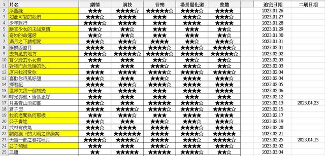 → rmia: 2023夏天,長月。。。第一次棄劇,話說有一就有二,現在我 01/02 23:27