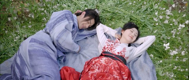 就躺的那塊光禿禿有點好笑,但這幕畫面還是美到值得出一張劇照呀!隨著雨滴落在兩人