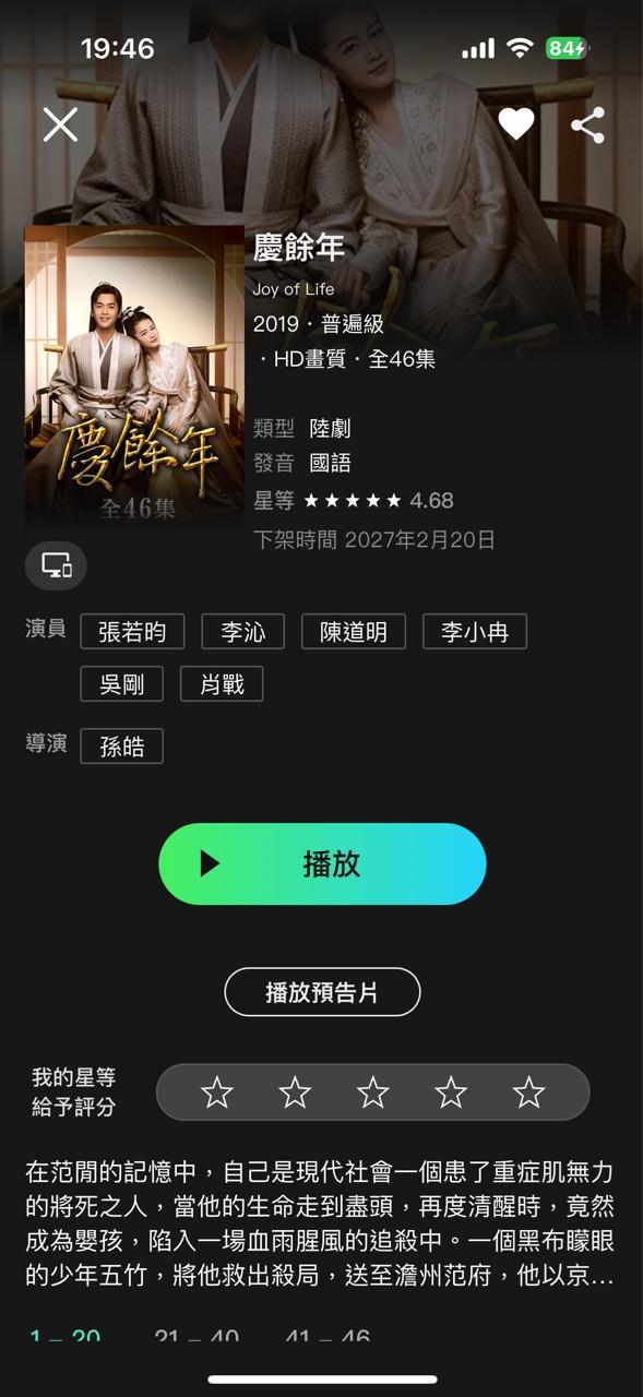 → evitalee6937: 大家為了看慶餘年無所不用其極XD 05/10 19:37