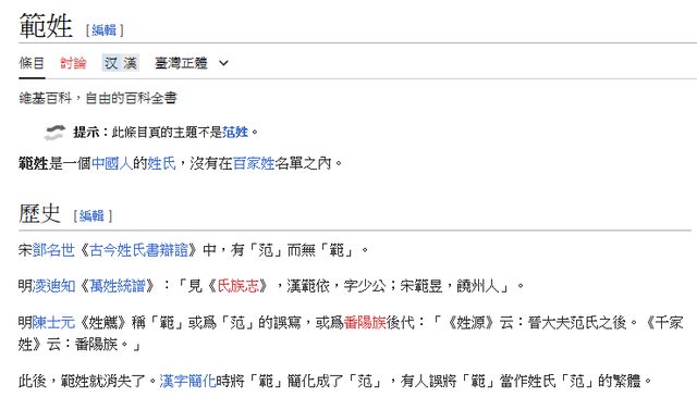 推 fongling: 范做範是中國在簡轉繁的時候常遇到的錯誤,姓氏上看過 05/18 18:00