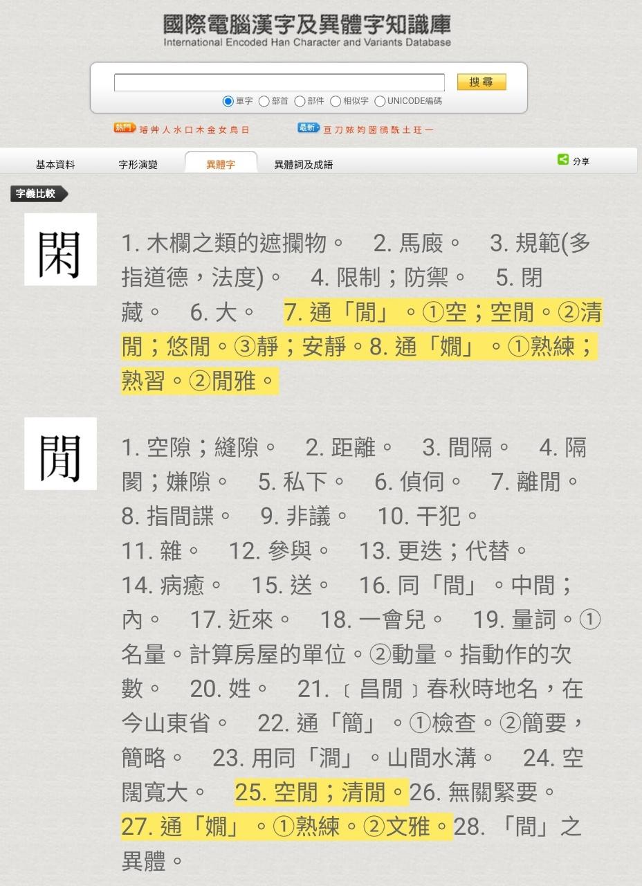 推 evitalee6937: 閑閒是通用的字!!!! 05/20 09:06