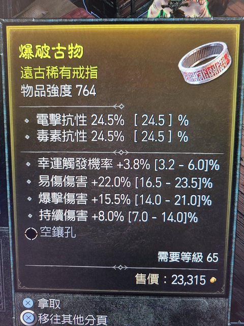 物品強度7640等級需求65 幸運/易傷/爆傷