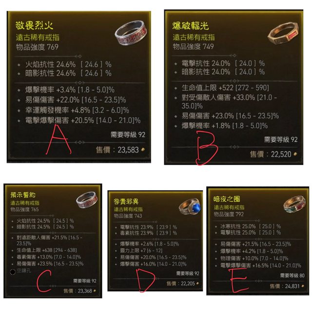 標題[交易] D4 出售幾顆 易傷/爆擊/幸運/生命 戒指