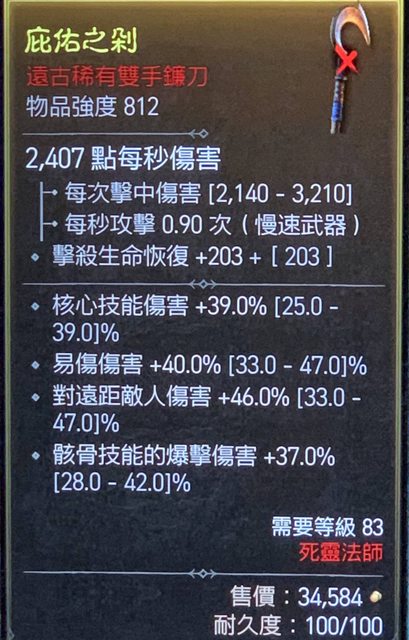 標題[交易] D4 估812雙手鐮刀 易傷駭骨核心
