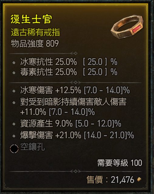 1. 智力+104/全屬+40/骸骨爆傷+38%/爆傷+32%