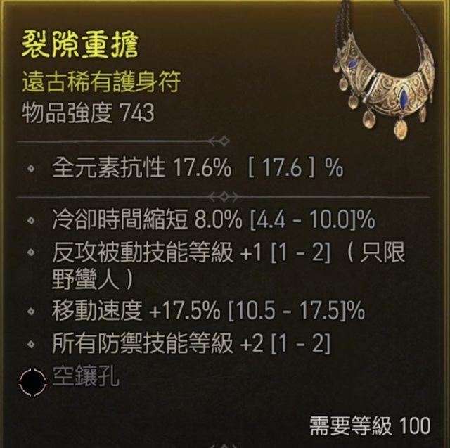 標題[競標] 項鍊 頂跑速 高冷卻 所有防禦技能2