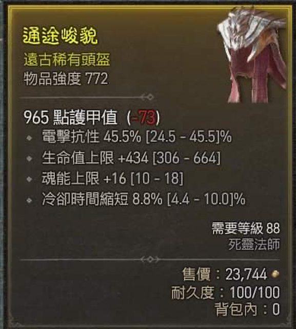 標題[競標] D4 88級 死靈 生命魂能冷卻帽子