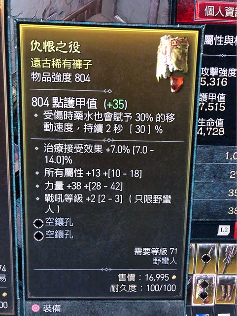 10. 仇恨之役 (71等)100W 護甲值不錯,洗一條減傷應該很夠撐到80後