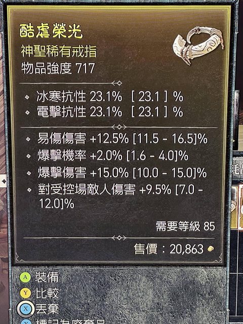 4. 易傷、爆率、爆傷戒指,等級=85,升級到725以上會重骰