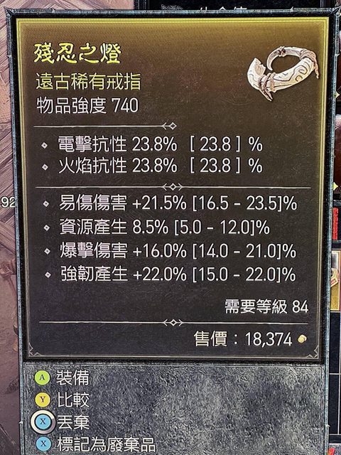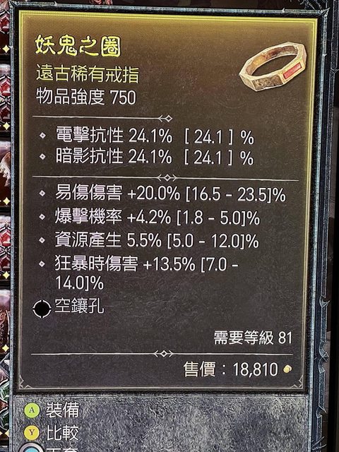 2.易傷、爆率、資源產生戒指,等級=81