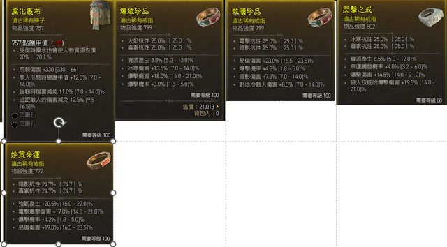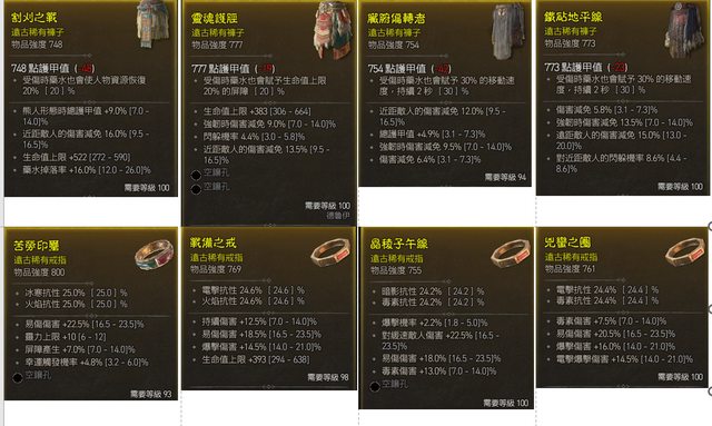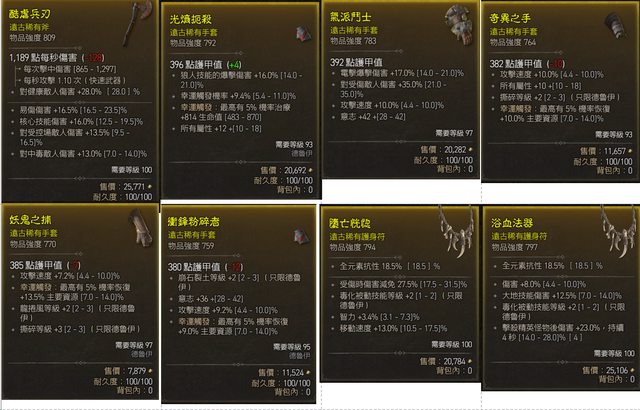 請注意需求等級,大部分都100的