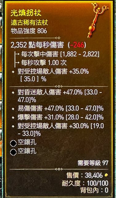 標題[競標] d4 806雙手法杖 頂易傷昏傷/ 爆擊/控