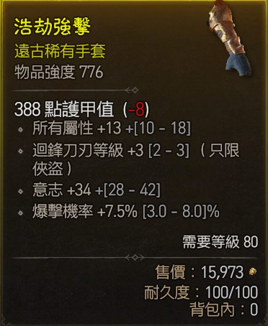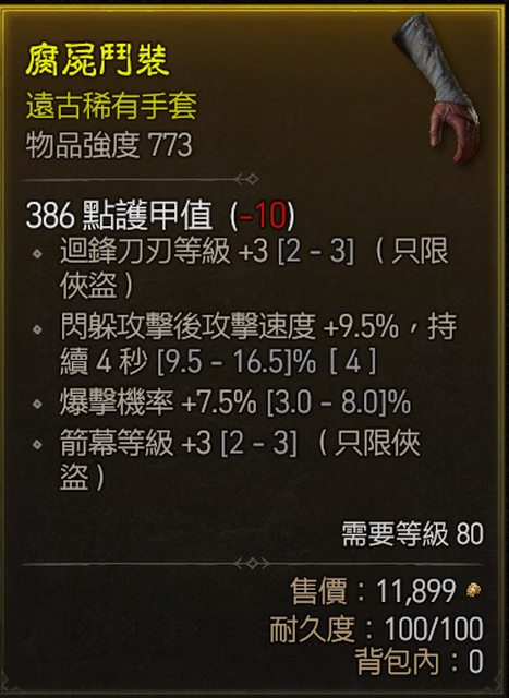 12. 773手套 迴鋒3 暴率 閃躲攻速