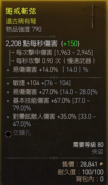 推 jojox123 : 俠盜的單手武器裝等強度會優先考慮 再來才是詞條08/04 15:55