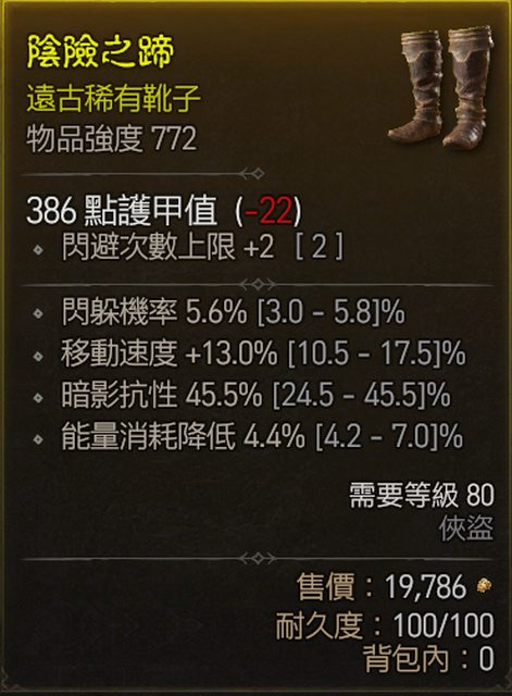 1. 772鞋(售出) 閃躲 移速 能量消耗