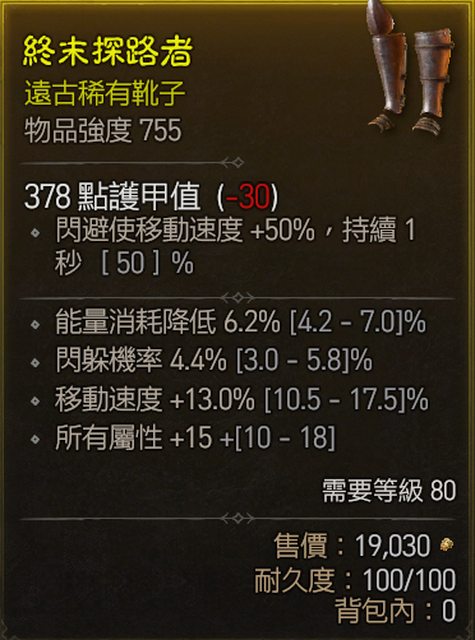 11. 755鞋(售出) 移速 能耗 全屬 閃躲