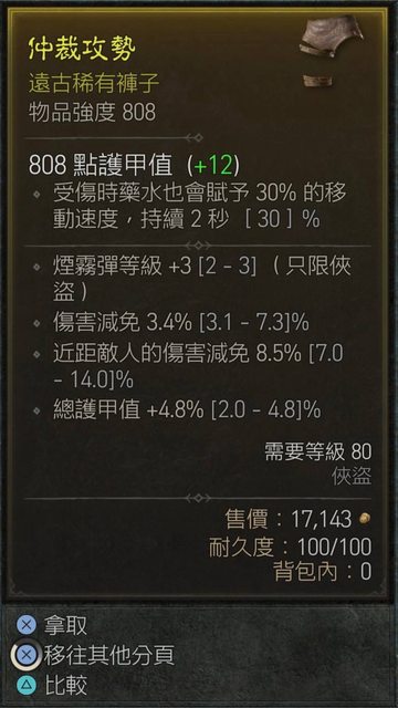 標題[競標] D4 賽季 俠盜減傷護甲褲