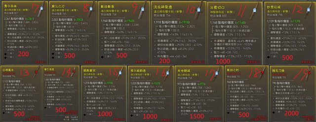價格都寫在裝備照片下方