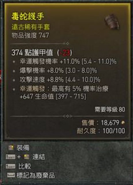 物 品:手套 頂暴率幸運攻速