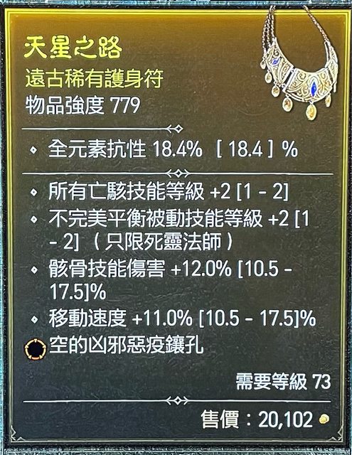 標題[競標] D4賽季 死靈項鍊 不完美平衡/骸骨傷/移速