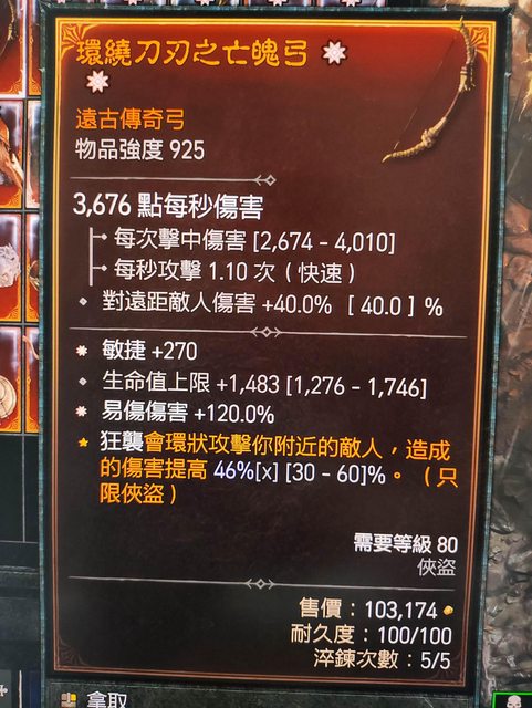 物 品:2太古 敏/易傷 生命 弓