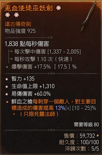 物 品:D4 S4 三太古單手劍(智/生命/易傷)