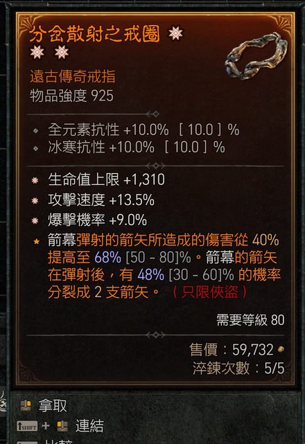 標題[競標] D4 生命攻速爆率 三太古戒指