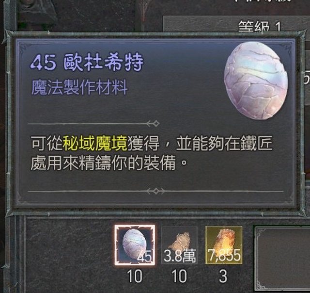 今天要開始升級裝備,才發現需要歐杜希特這個東西,