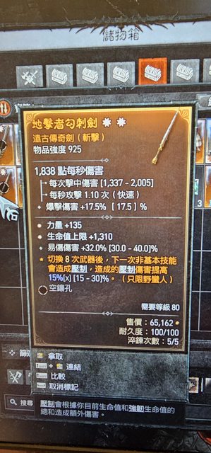 物 品:D4S4 雙太古力量生命單手劍