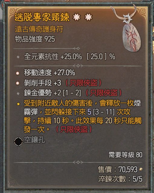 : 物 品:雙太古項鍊(*跑速/*剝削/+2煉金)