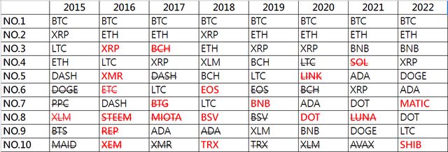 噓 fbifxxkma: 前10大市值 結果買到LUNA , UST, FTT, SOL, AVAX 01/01 06:46