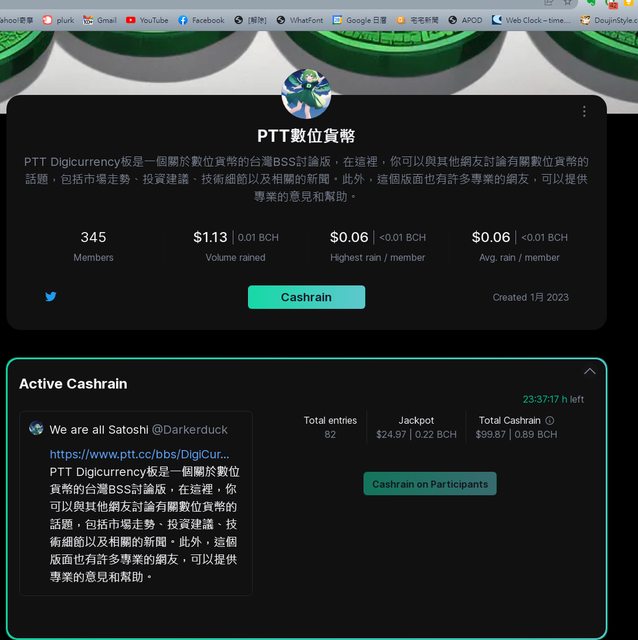 → ppuuleo: 第一次參加cashrains 項目還真的收到 BCH 01/19 13:39