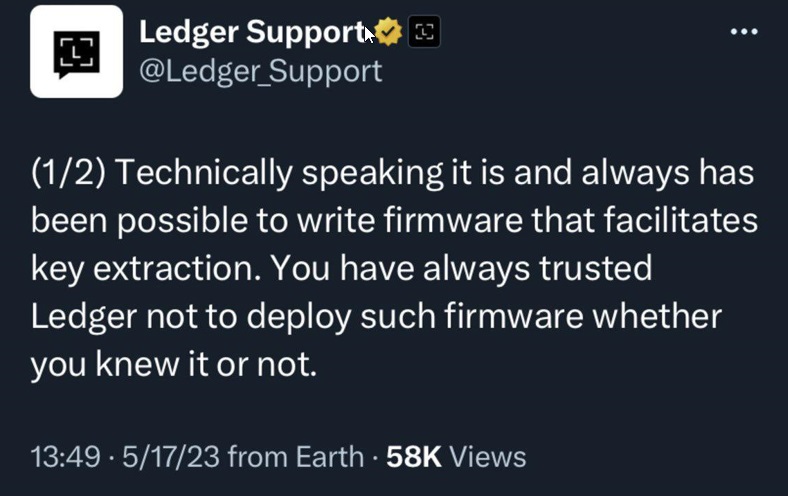 → PriusC: 韌體就能讀私鑰所有的硬體錢包都一樣吧? 05/18 12:17