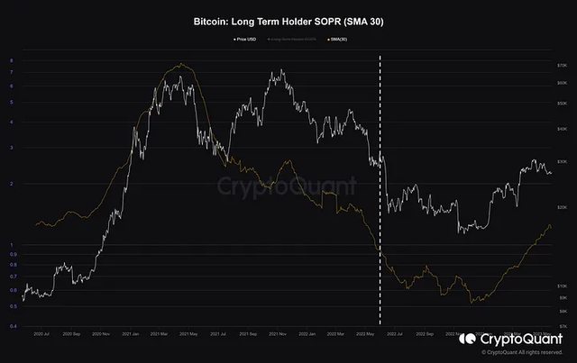 Figure 3a: Long Term Holder SOPR (SMA 30) - 1 Year