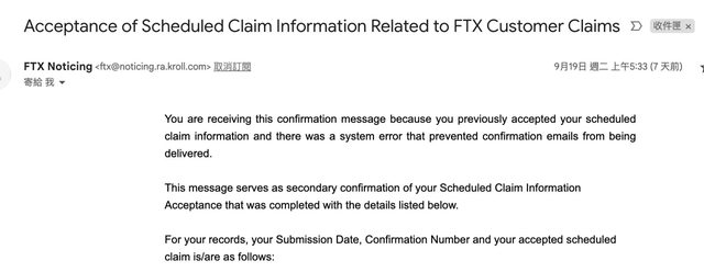 沒有收到各位說的PDF,但有收到Kroll的acceptance of schedule claim information (