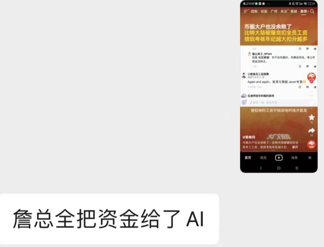 中國媒體報導,職場社交平台脈脈社區資訊,疑似比特大陸員工反饋,因現金流問題,比