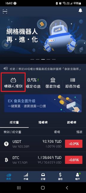 首先下載幣託的APP,登入後點開機器人理財