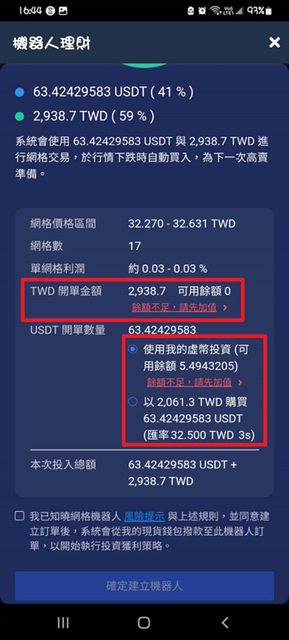 (因為我本身已經有網格機器人在運行了,所以這裡出現餘額顯示不足是正常的,此圖僅