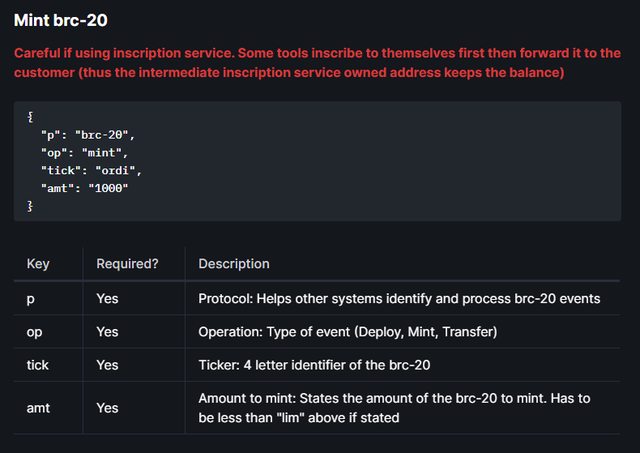 譬如創建一個BRC-20代幣ORDI就是上面那個json指令。把各個欄位定義好就行。