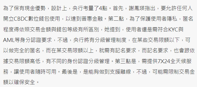 推 DarkerDuck: 以台灣為例的話,設想中的CBDC會分級管理。 01/02 02:41