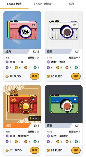 玩到現在出入金了不少次,目前都沒有失敗過,FOOD 可以直接交易,要鑄造新的相機要
