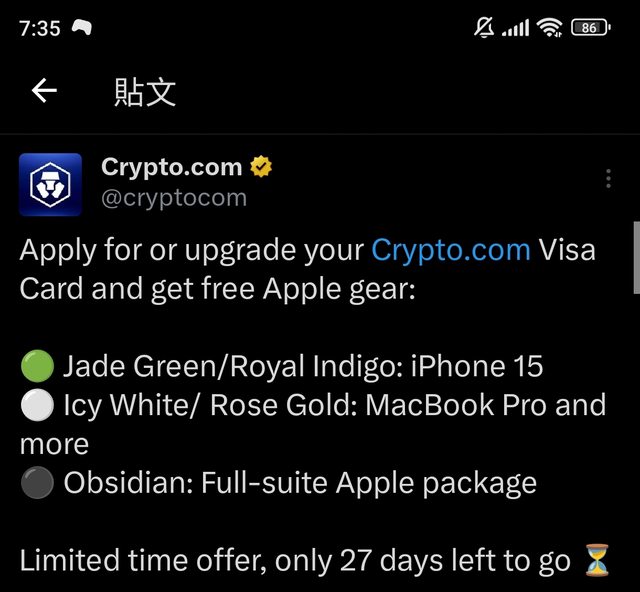 推 okpk3k: apple的補助,是官方給的CRO幣,要拿到手立刻賣掉才有等03/08 00:11