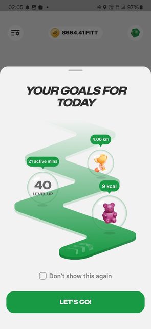 達成每日目標,就可以升1級,並且可以開「mystery box」,這個box裡面可能有「FITT