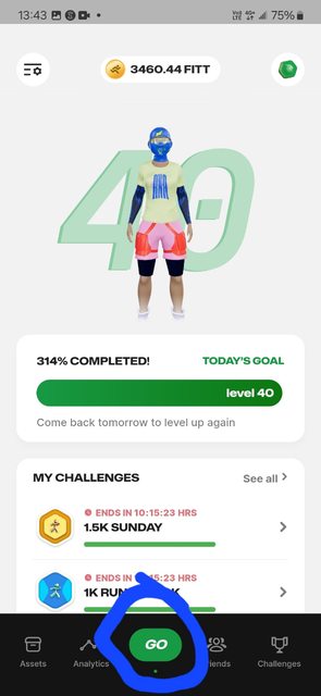那就是在首頁按「Go」,他會顯示你今天的目標(例如:10分鐘的活動時間),