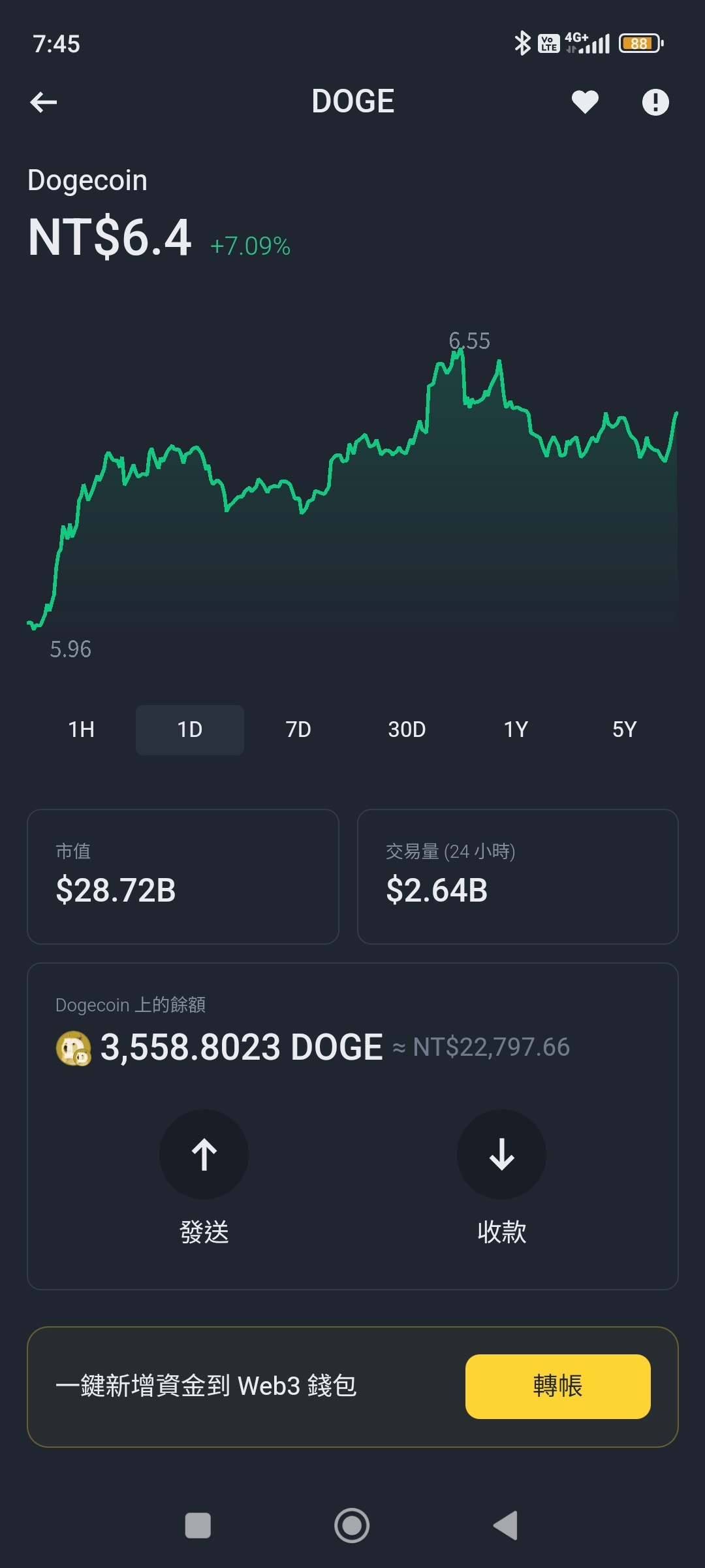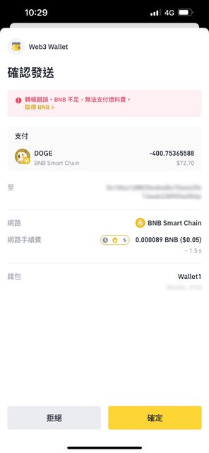 → SamuelLuo: 透過BNB Smart Chain(BEP20)轉到Web3錢包,並不是DOGE 04/07 18:35