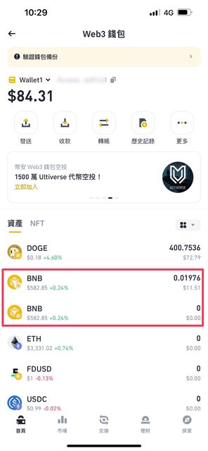 推 OwOptt: 原本在web3錢包的狗幣是幣安鏈封裝的 04/07 18:31