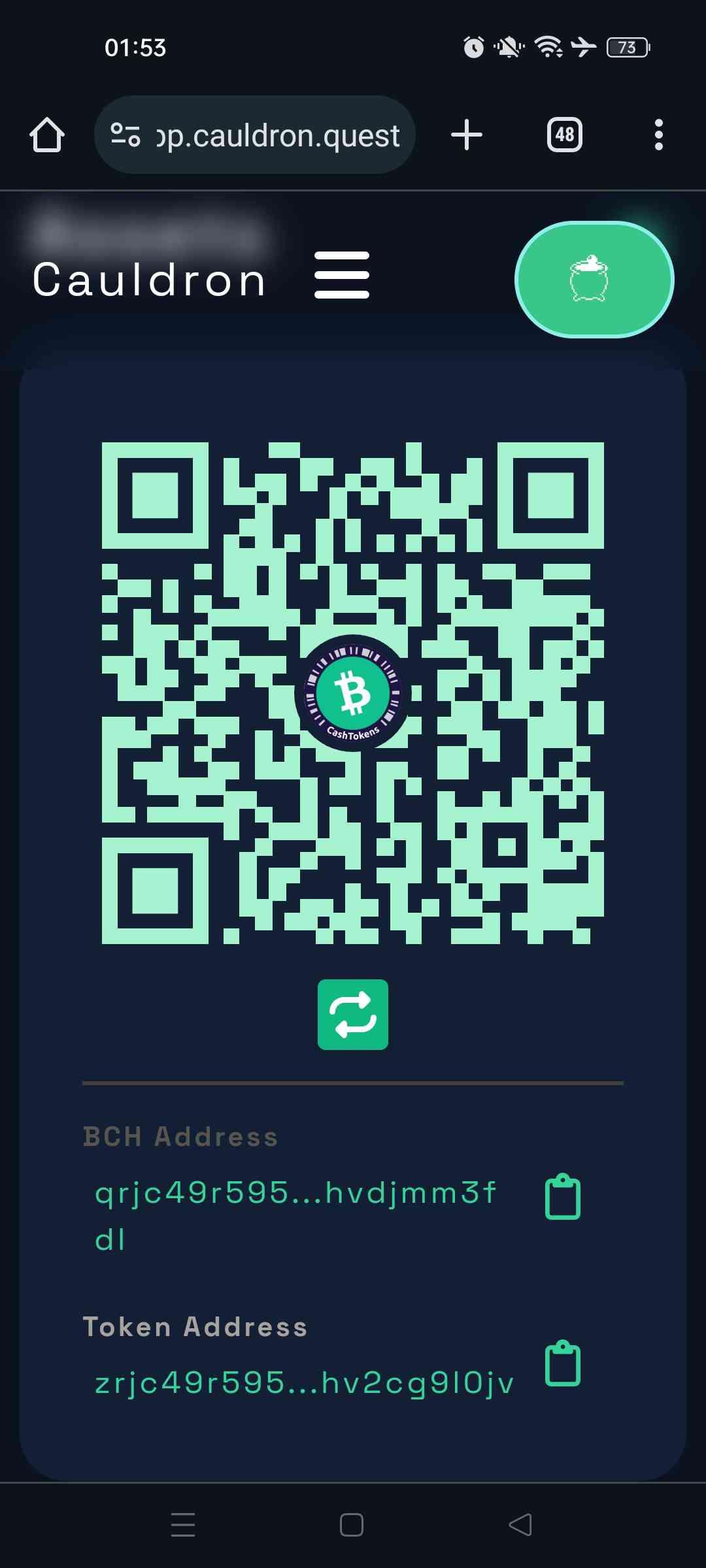 → OwOptt: @gordonBCH 你貼到bch地址了,要按那個像重整的符號才會 04/28 21:34