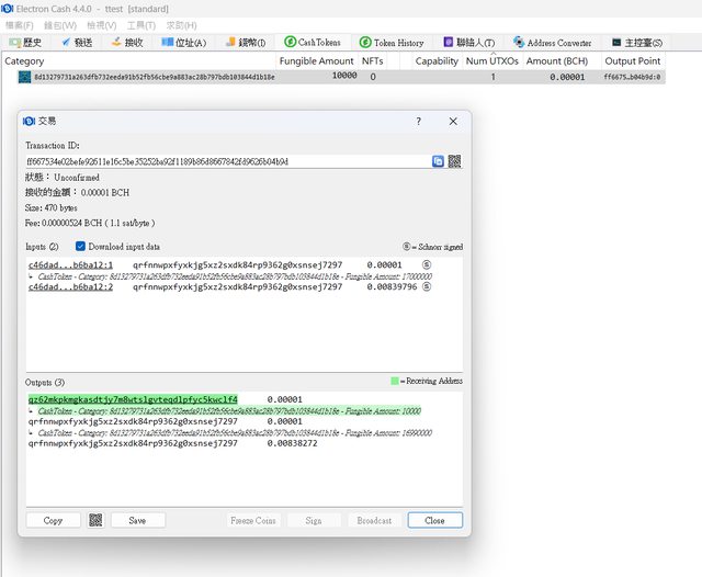 要 z開頭的地址才是cashtoken在用的地址