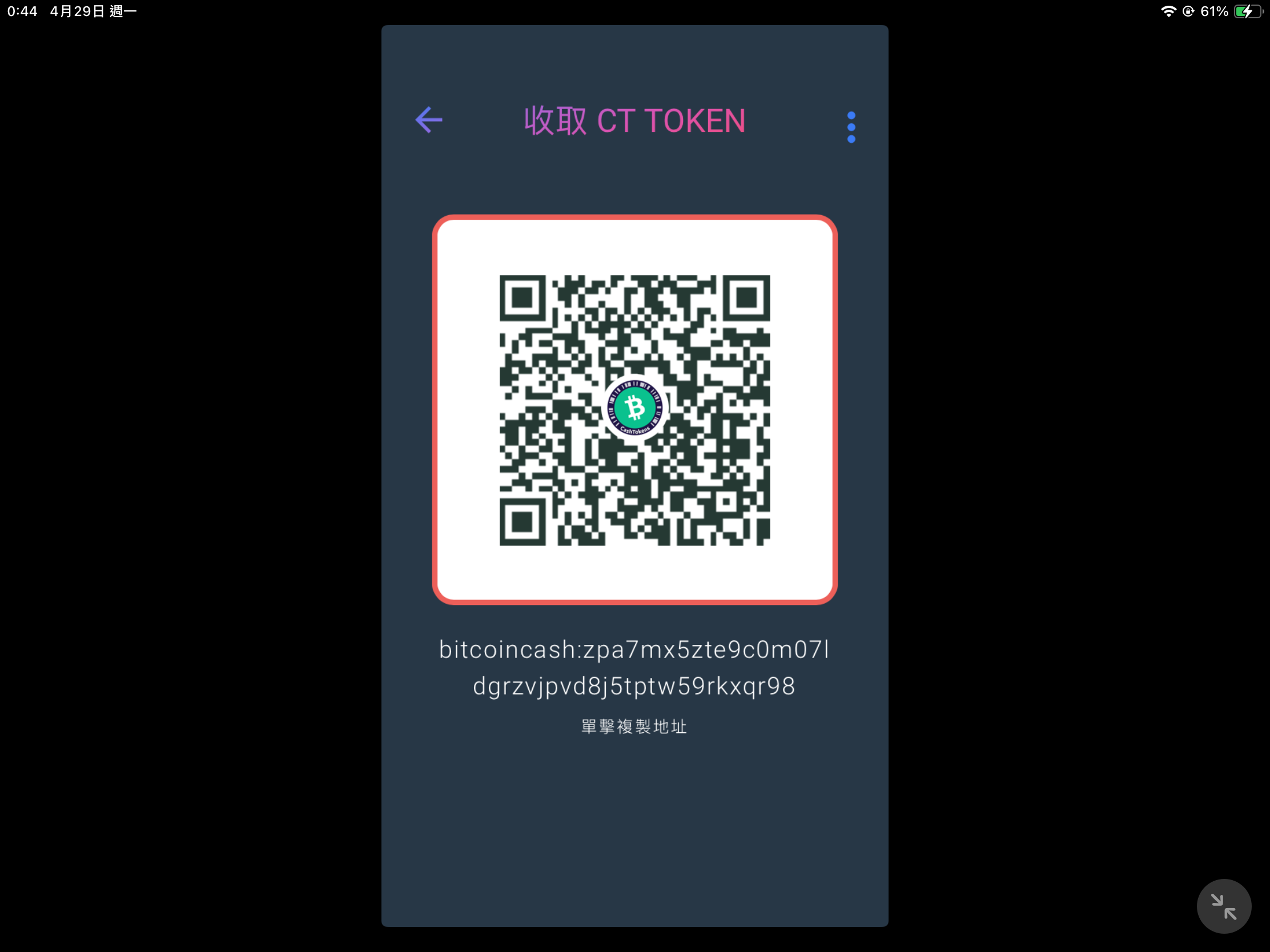 → john371911: 傳了。反正BCH跟CT位址可以轉換,是相通的。 04/30 20:27