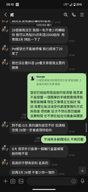 推 BrandonMai: 絕對就是詐騙啦 急需用錢還一直拖 12/26 11:25